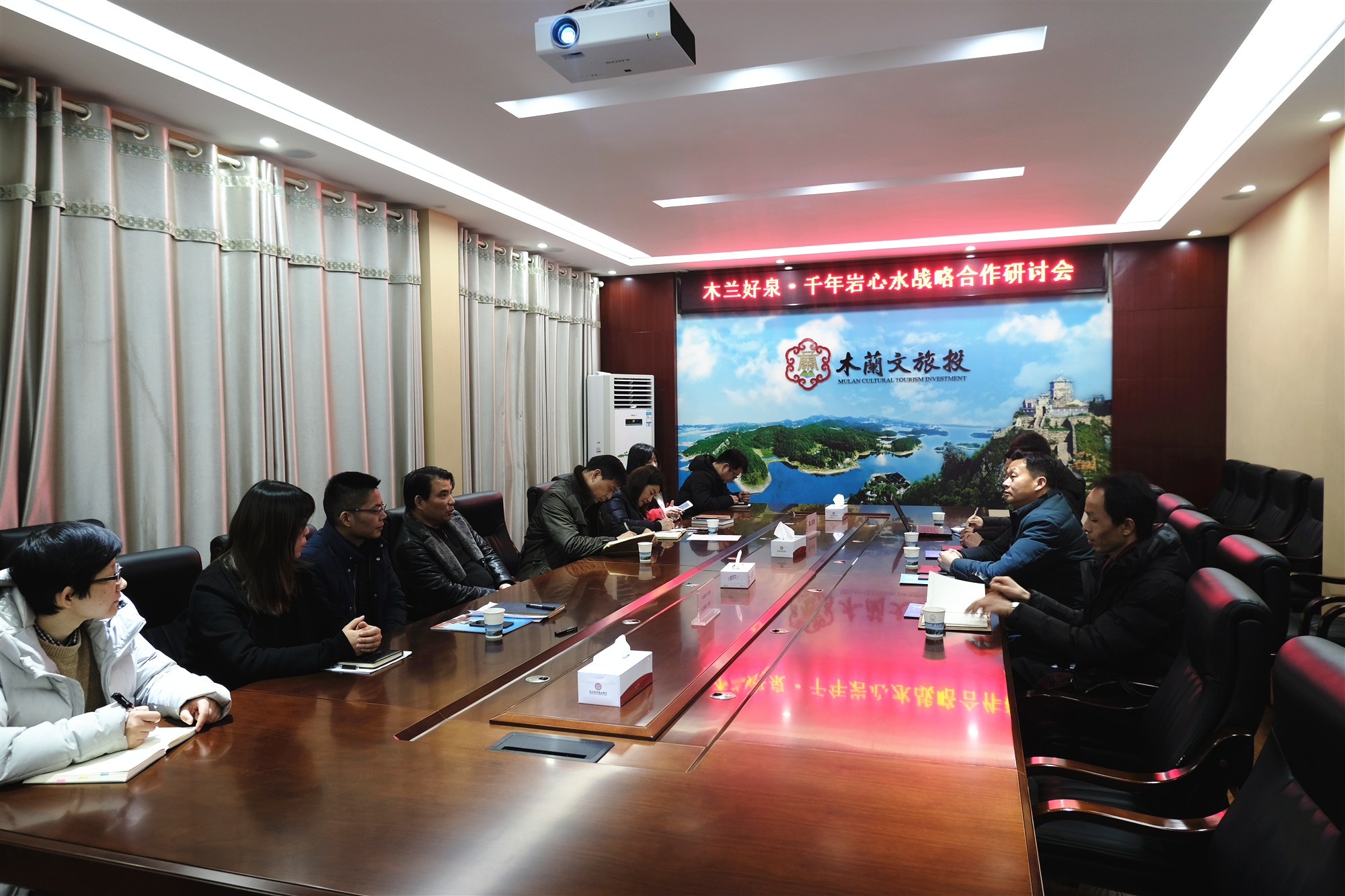 而后文旅投組織召開了木蘭好泉-千年巖心水戰(zhàn)略合作座談會(huì)議,文旅投集團(tuán)董事長胡述翔、總經(jīng)理王光華、文創(chuàng)公司執(zhí)行董事高輝等領(lǐng)導(dǎo)參會(huì)。會(huì)議期間,大家積極建言獻(xiàn)策,暢所欲言,共謀發(fā)展,會(huì)議一致認(rèn)為將三座山的千年巖心水和木蘭有禮這個(gè)黃陂區(qū)政府旅游特色商品公共品牌有機(jī)融合,能形成強(qiáng)大的合力,對品牌的推廣發(fā)揮積極的效應(yīng),并力爭兩年立足黃陂,三年進(jìn)軍大武漢。雙方在友好的氛圍中達(dá)成了“品牌共建,資源共享,合作共贏,精準(zhǔn)幫扶”的戰(zhàn)略合作共識(shí)。