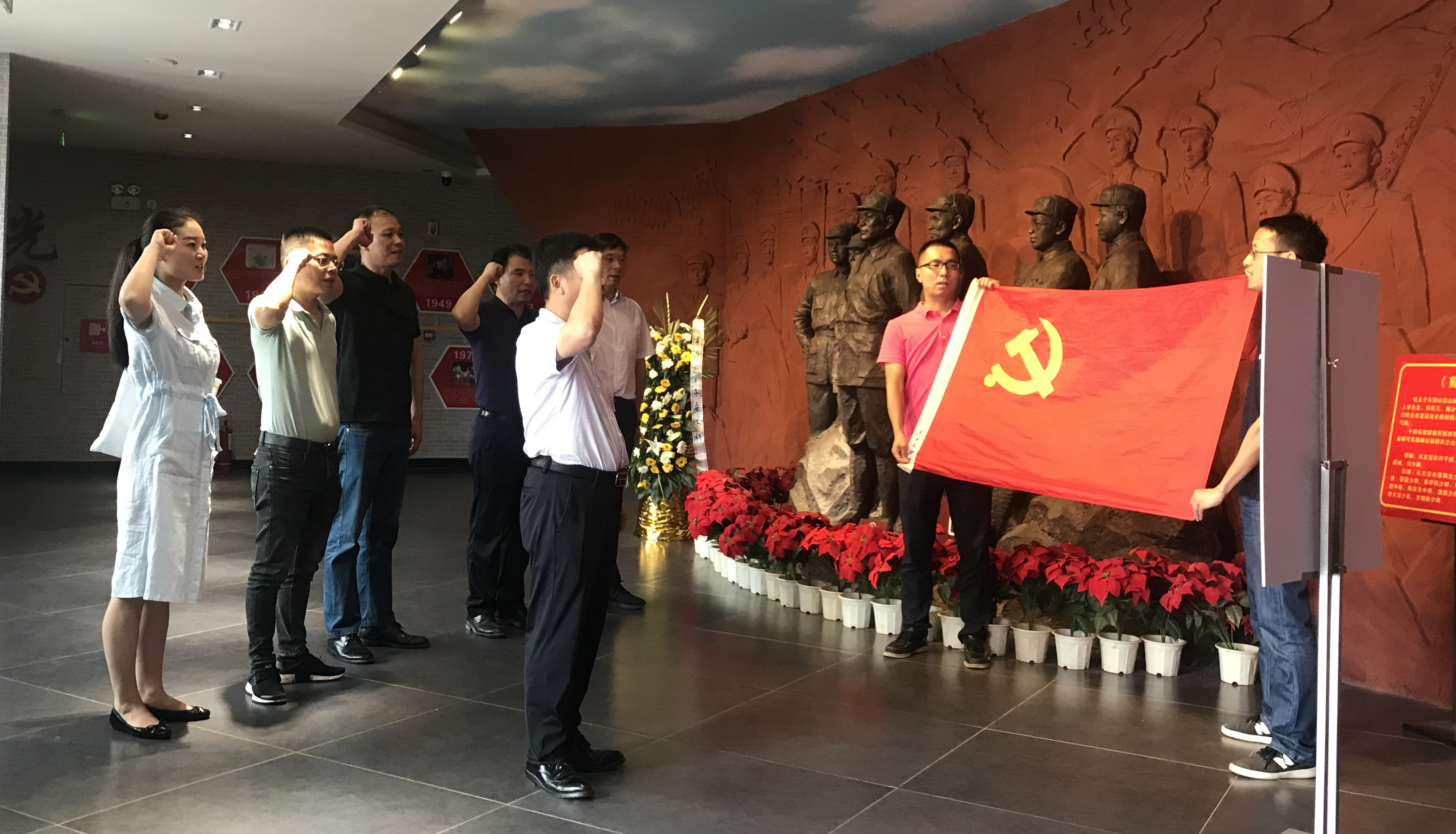 黨員同志們自覺匯集到英雄群像前,面向先烈們血染的黨旗鄭重宣誓,重溫入黨誓言,共同懷念入黨的初心和使命;歲月冉冉,但我們對黨對人民的承諾以及踐諾始終如一;我們也必將追隨先烈們的腳步,勿忘并踐行自己曾經(jīng)宣誓的責任和擔當。