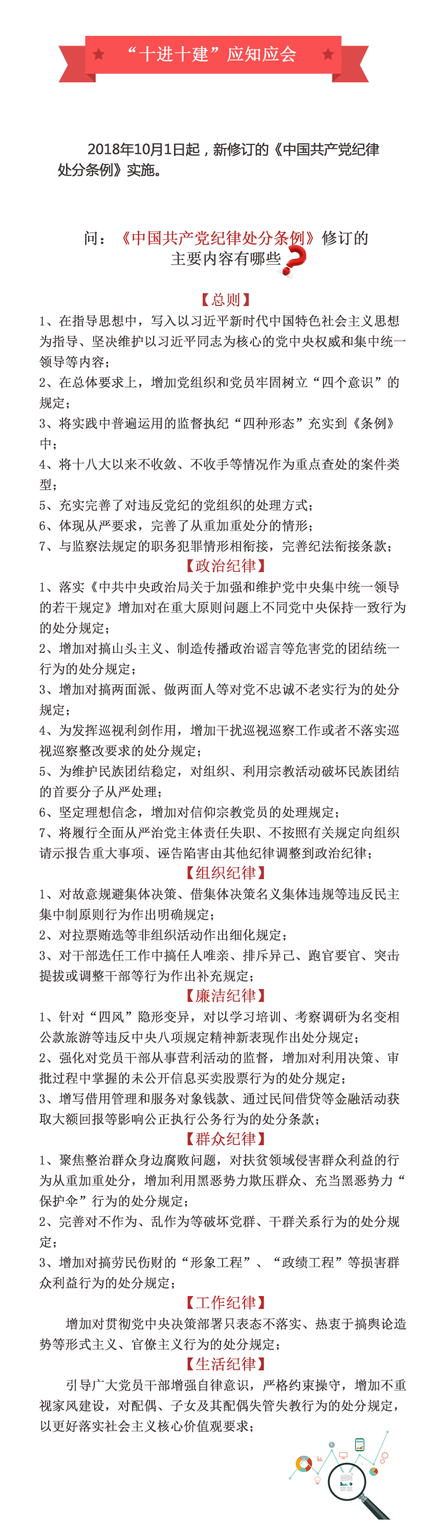 什么是“十進(jìn)十建”? 一是進(jìn)黨委(黨組)工作議程和中心組學(xué)習(xí)安排,建立健全日常工作和學(xué)習(xí)制度; 二是進(jìn)黨政機(jī)關(guān)日常工作和學(xué)習(xí)安排,建立健全機(jī)關(guān)紀(jì)委和紀(jì)檢員日常...2018-10-12